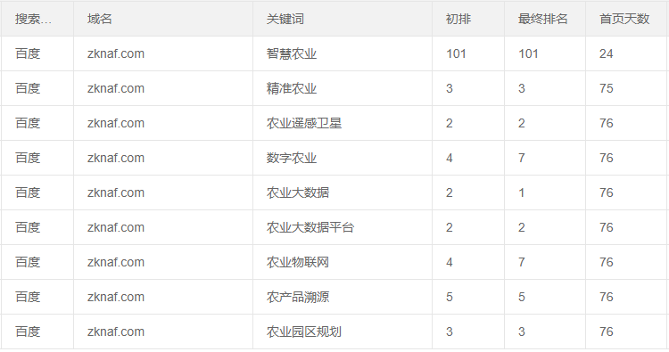 中科南沣农业科技有限公司委托我公司西安战略合作伙伴优化其官网核心关键词排名,客户指定9个关键词,全部排名首页,上词率100%!关键词如:智慧农业、精准农业、数字农业、农业大数据、农业物联网、农产品溯源、农业遥感卫星等业务流量词。