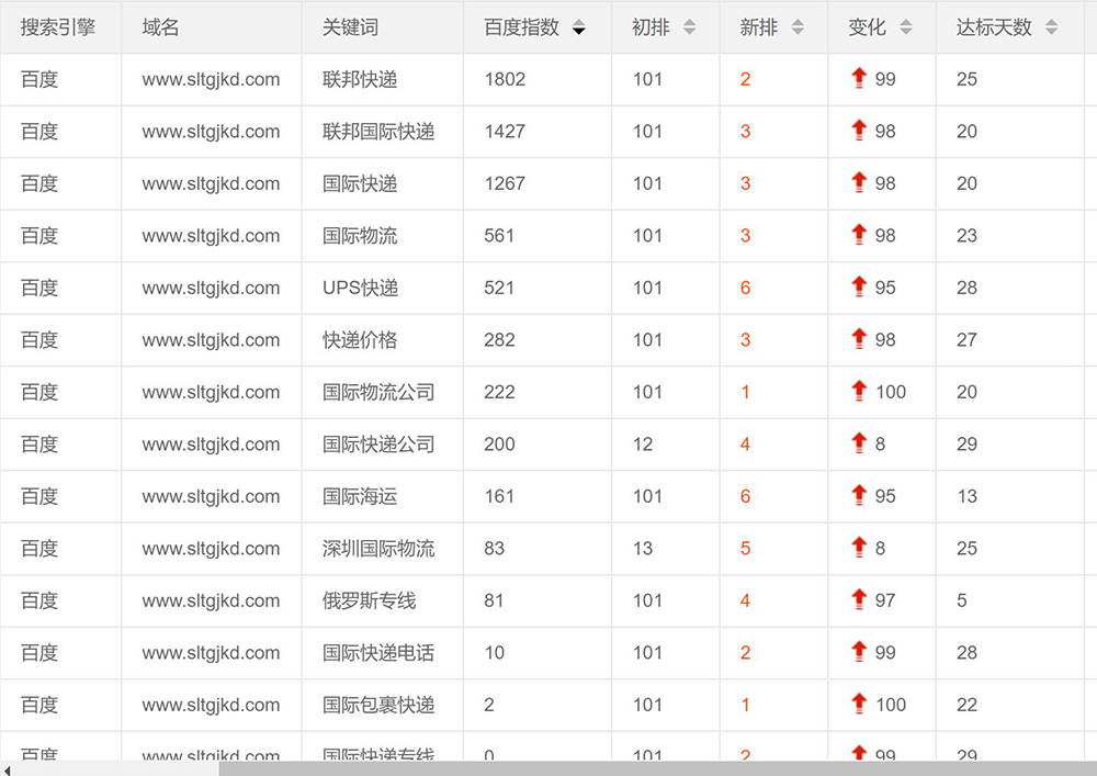 这是我们优化的关于国际物流的相关热门关键词,目前上首页词20多个,全部是客户指定想要的国际物流行业的大词、热门词(在同行眼里这都是天词,我们认为是小词,很多同行都觉得是大词,上不去),比如,国际物流,国际快递,联邦物流等,应该是国际物流行业众多客户梦寐以求的好词大词!废话不多说,直接上效果图。