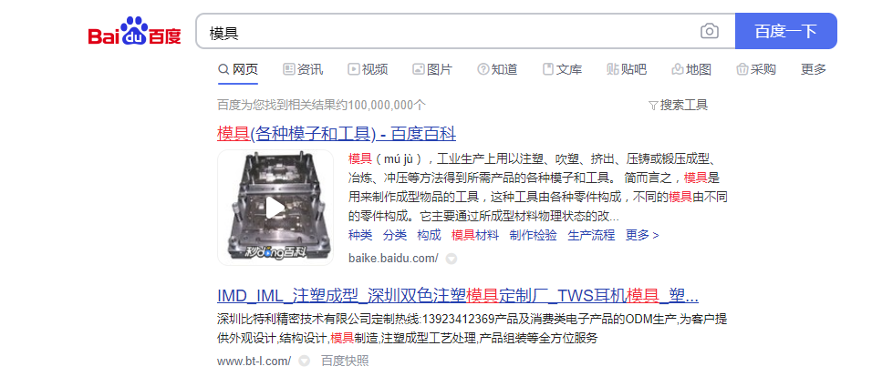 深圳比特利精密技术有限公司专注产品及消费类电子产品的ODM生产,为客户提供外观设计,结构设计,模具制造,注塑成型工艺处理,产品组装等全方位服务。公司网站交给我公司优化多个排名已经上第一页,“模具”指数1000多也进入首页。