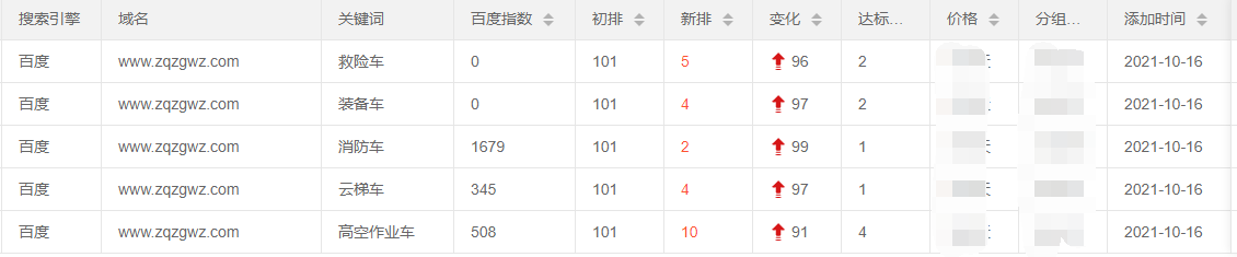 程力集团第十六分公司与我公司代理商合作SEO优化,主要优化关键词为消防车,云梯车,高空作业车等热门词,初始排名均在100名外,关键词已经上首页。