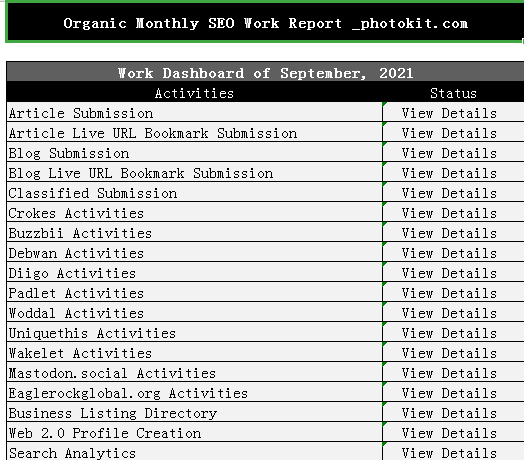 外链专员每个月都会为该网站发布大量高质量的外链内容,并且在每月优化报告中提交给客户,并介绍目前关键词和流量进展。外链包含以下内容: