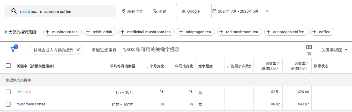 这个订单是友商(是一家谷歌SEO销售型代理商)给过来的,是因为原始技术提供方在约定的时间到了之后,始终无法优化上去承诺的关键词(KPI完成度低于10%),甲方客户闹退款,因合作金额较高(是我们价格的接近4倍),最终找到我们,并争取到3个月的时间,让我们完成原始合同的交付。我们用了一个月时间优化,已经完成指定词SEO的KPI的40%,包括mushroom coffee、reishi teas、reishi tea这几个热门词,特别第一个,月搜索量10万-100万级别,也被我们优化到前三页,所以客户对于我们的技术很有信息,放心给我们继续优化,直至效果完成甚至超过预期。